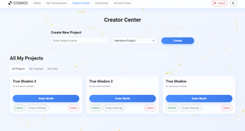 COSMOS allows you not just to be a bystander but the creator of a universe. Here, you can design and manage a complex society made up of multiple agents, each with its own memory, goals, and emotions. Through precise coordination between the agents, COSMOS presents you with a fluid, cohesive, and vibrant story world.